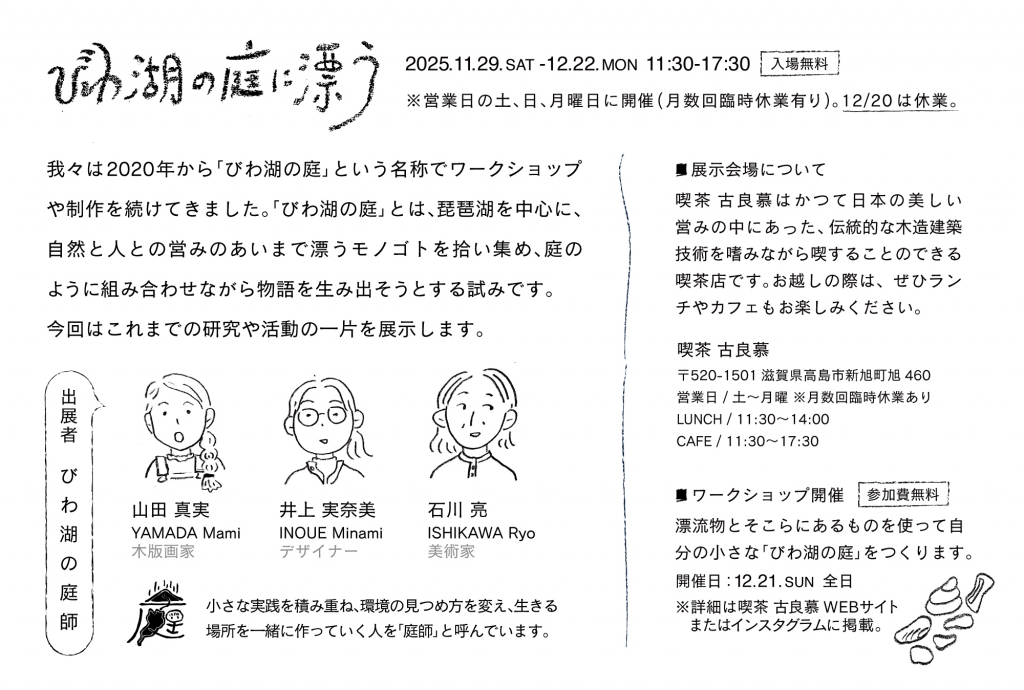 「喫茶 古良慕」は、島村葭商店が100年以上かけて収集してきた古材、古建具、近江水屋箪笥などの民藝品、さらには滋賀県を中心に構築してきた業界、人と人とのネットワークが集まる場所です。いわば島村葭商店の集大成の場なのです。